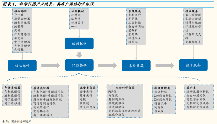 国金证券指出,从核心零部件到仪器整机生产、试剂耗材配套,再到通过多产品组合服务丰富的下游客户,最后到后市场技术服务能力,科学仪器行业具有广阔的行业纵深,市场空间广阔。与此同时,由于涉及核心零部件种类多,搭建稳定可控、具有产业竞争优势的科学仪器研发、生产和服务体系,需要持续多年的高研发投入和市场推广。极高的壁垒使得体系完善的科学仪器巨头具有优质的行业竞争格局和较高的毛利率和净利率水平。